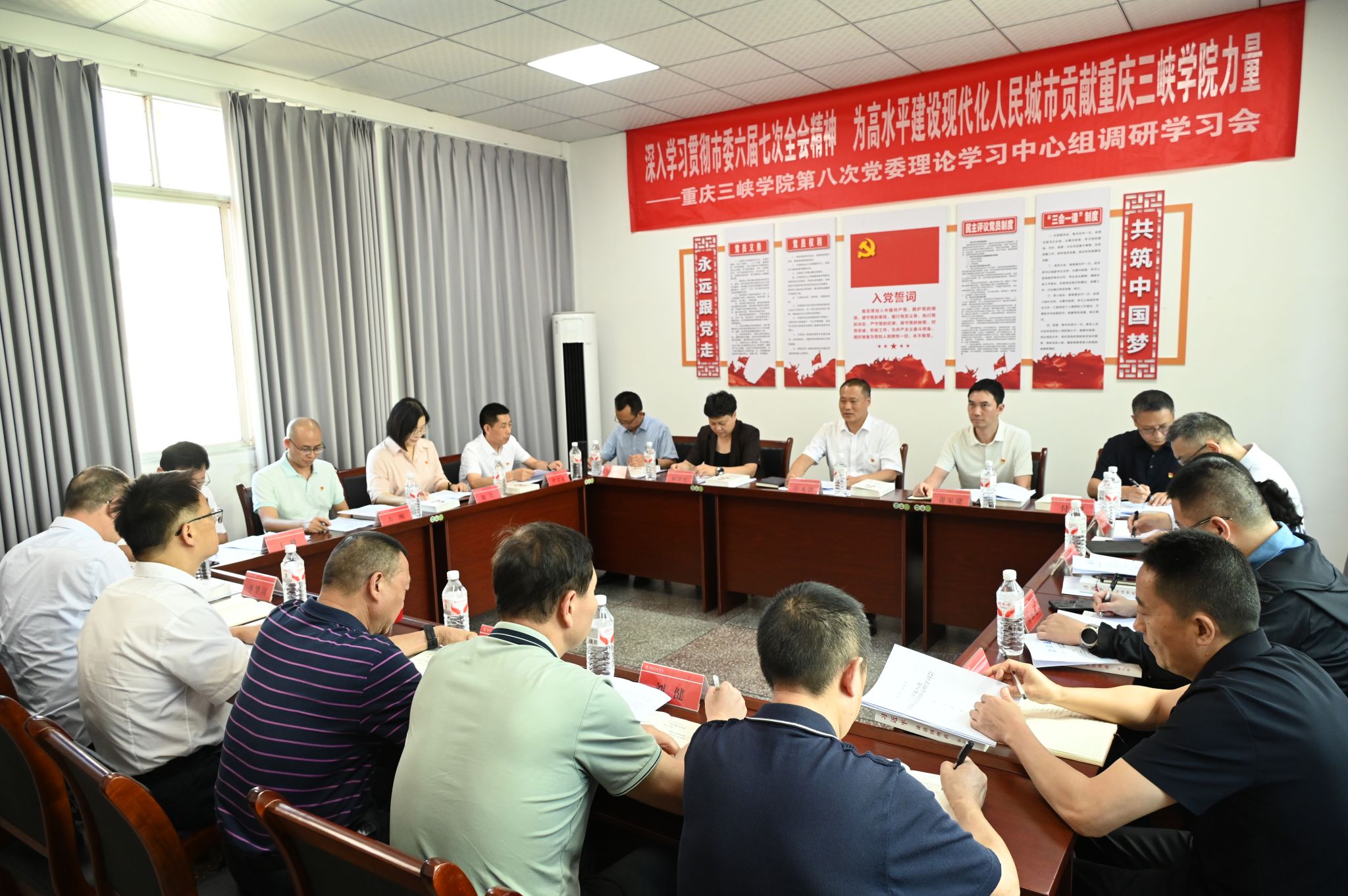 9月24日,學(xué)校黨委理論學(xué)習(xí)中心組舉行學(xué)習(xí)調(diào)研會(huì),專題學(xué)習(xí)中央城市工作會(huì)議精神、市委六屆七次全會(huì)精神和萬(wàn)州區(qū)委六屆七次全會(huì)精神。在家校領(lǐng)導(dǎo)、黨委常委,部分二級(jí)學(xué)院、職能部門領(lǐng)導(dǎo)及百安壩街道黨工委負(fù)責(zé)人共20余人參會(huì)。市委教育工委列席旁聽第十組謝家建、徐致遠(yuǎn)兩位同志現(xiàn)場(chǎng)指導(dǎo)。