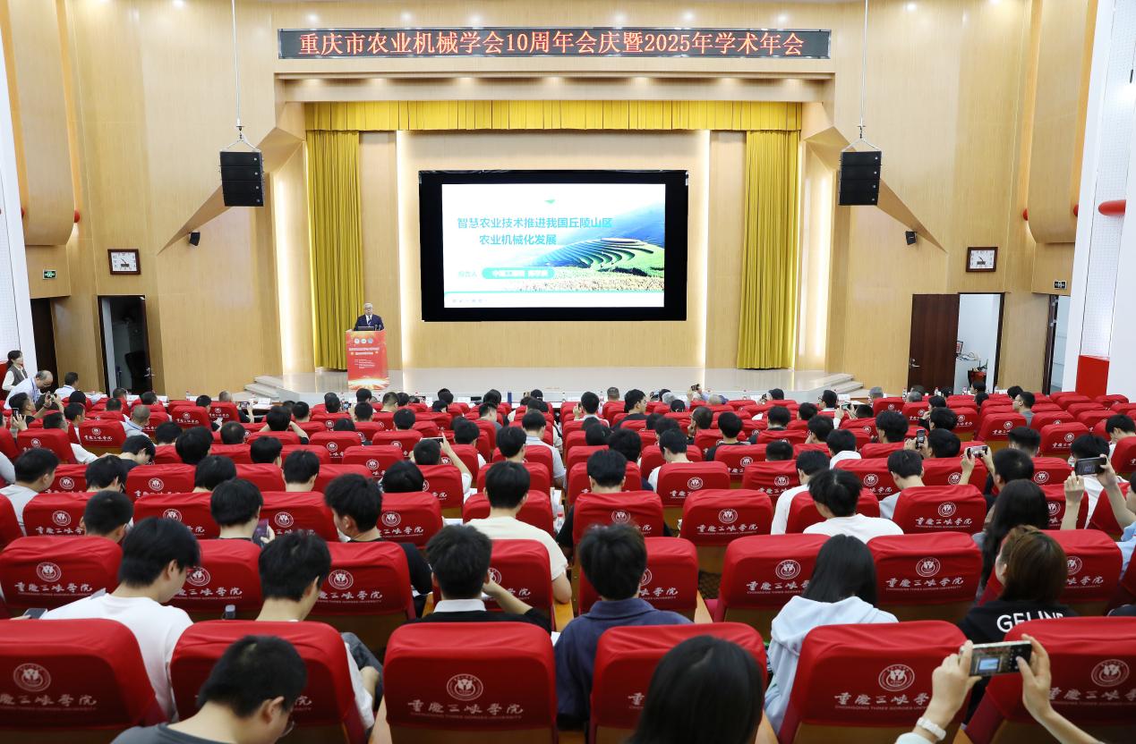 10月17日,重慶市農(nóng)業(yè)機械學(xué)會十周年慶典暨2025年學(xué)術(shù)年會在我校舉行。來自中國農(nóng)業(yè)機械學(xué)會、農(nóng)業(yè)農(nóng)村部南京農(nóng)業(yè)機械化研究所、北京航空航天大學(xué)、西南大學(xué)、貴州大學(xué)、湖南農(nóng)業(yè)大學(xué)等60余家高校、科研院所和行業(yè)企業(yè)的180余位專家學(xué)者、企業(yè)代表及師生參會,共同探討農(nóng)業(yè)機械化領(lǐng)域的新技術(shù)、新理念,匯聚智慧與力量。黨委書記許光洪出席開幕式并致辭。