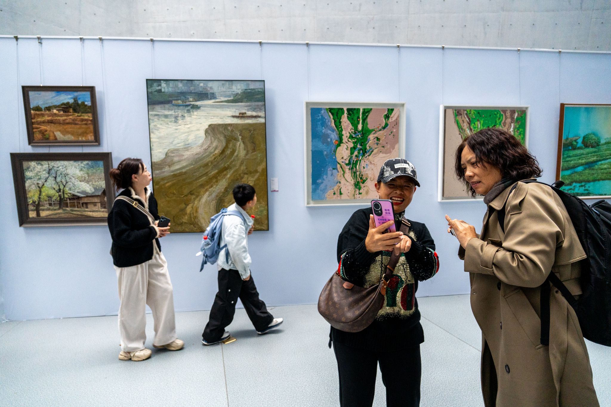 本屆展覽匯聚了來自不同年齡層與背景的創(chuàng)作者,年齡上至七旬長者,下至十齡幼童,跨度寬廣。參展者中,既有深耕藝術(shù)教育的高校教師與職業(yè)藝術(shù)家,亦有扎根基層的文化工作者及純粹的熱愛者。而來自開州的黃鳳碧、楊慶梅、楊合雅、王亦竹一家,祖孫三代四位女性共同參展的盛況,更構(gòu)成了藝脈綿延的動人圖景。