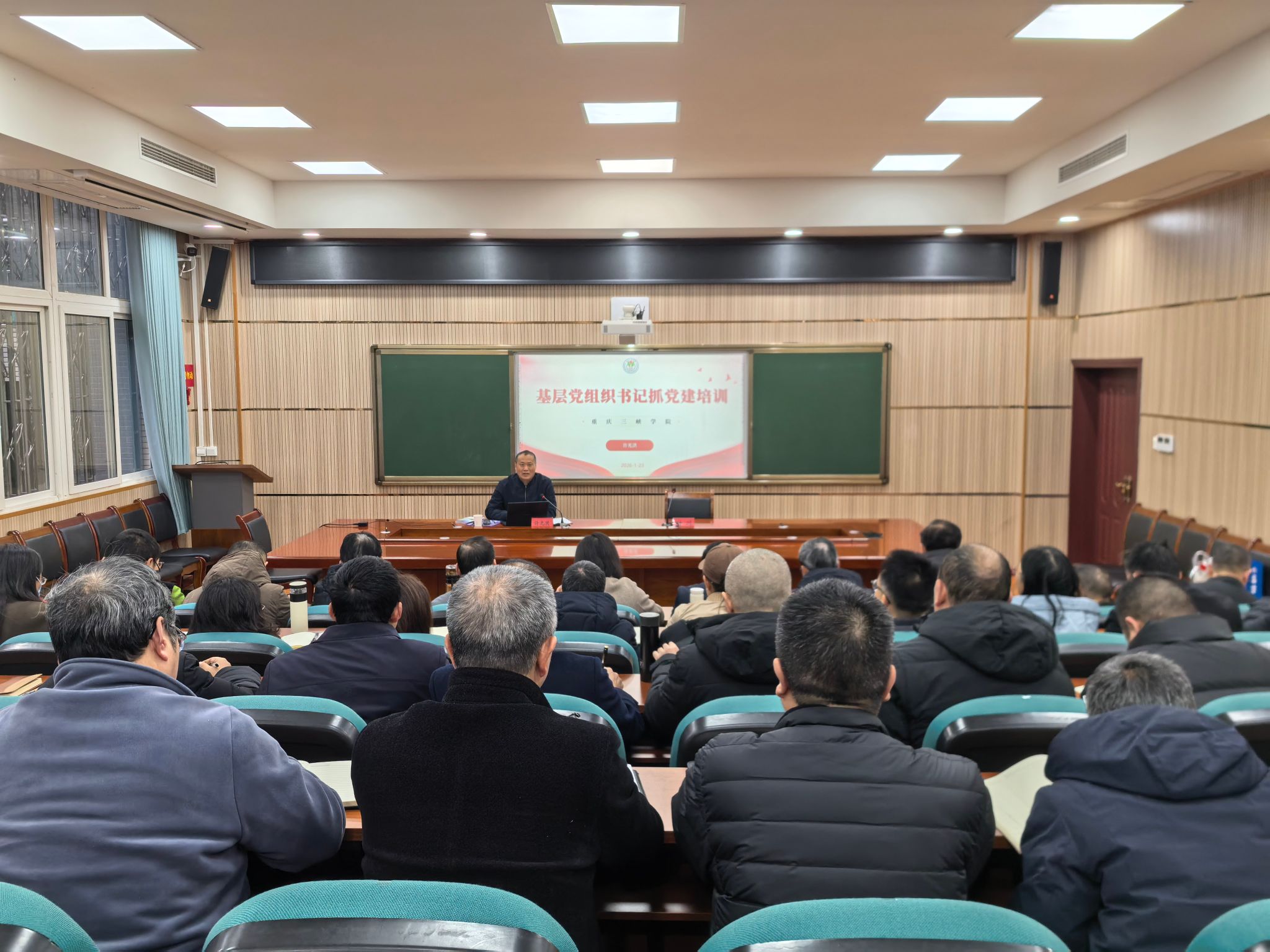 1月23日上午,學(xué)校黨校“紅巖先鋒”學(xué)堂2026年第一課開講。黨委書記許光洪圍繞“基層黨組織書記抓黨建”主題,為全校二級(jí)黨組織書記等“關(guān)鍵少數(shù)”講授“十五五”開局之年第一課。他強(qiáng)調(diào),必須緊緊抓住二級(jí)黨組織書記這一關(guān)鍵,堅(jiān)持問題導(dǎo)向,深化落實(shí)黨建統(tǒng)領(lǐng)“885”工作機(jī)制,活用學(xué)?!?73”工作體系,切實(shí)將黨建優(yōu)勢(shì)轉(zhuǎn)化為推動(dòng)學(xué)校高質(zhì)量發(fā)展的制勝優(yōu)勢(shì)。