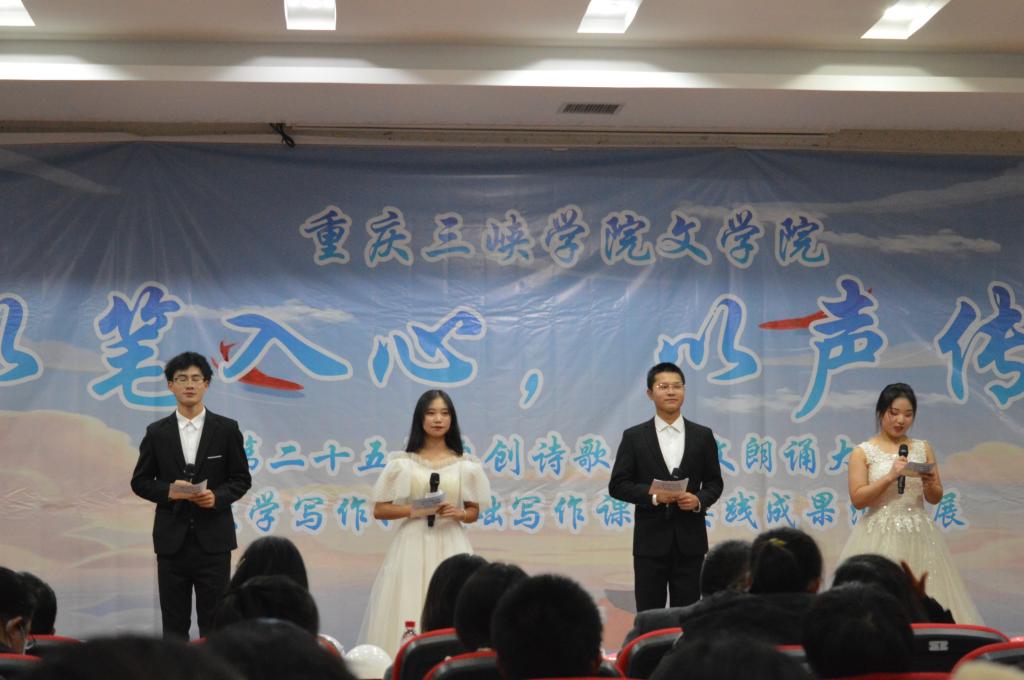 12月16日,文學院第25屆自創(chuàng)詩歌、散文朗誦大賽暨大學寫作、基礎寫作課程實踐成果匯報展在明辨樓2-104舉辦。文學院領導班子及部分教師代表共同出席本次大賽并擔任評委?!洞髮W寫作》授課教師嚴小紅和《基礎寫作》授課教師邢文、輔導員劉林精全程指導并出席此次大賽。