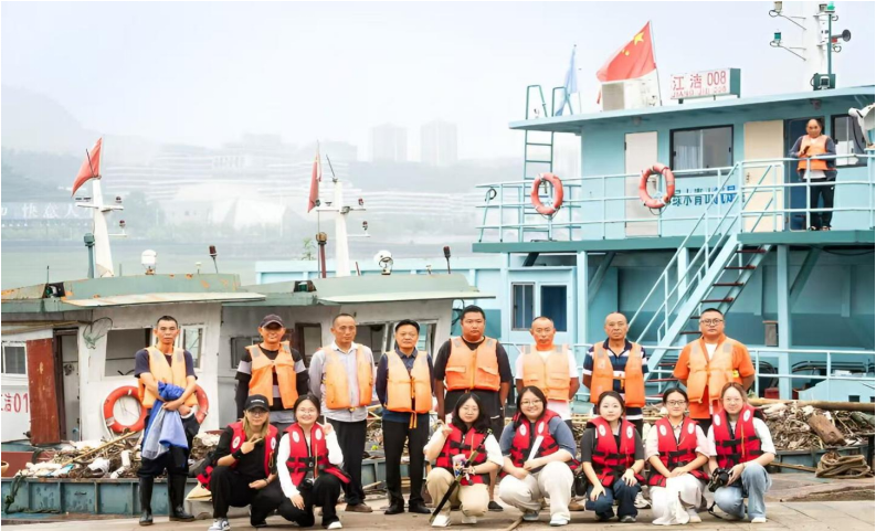 碧水俠影創(chuàng)作團隊在拍攝過程中與萬州長江清漂隊合影