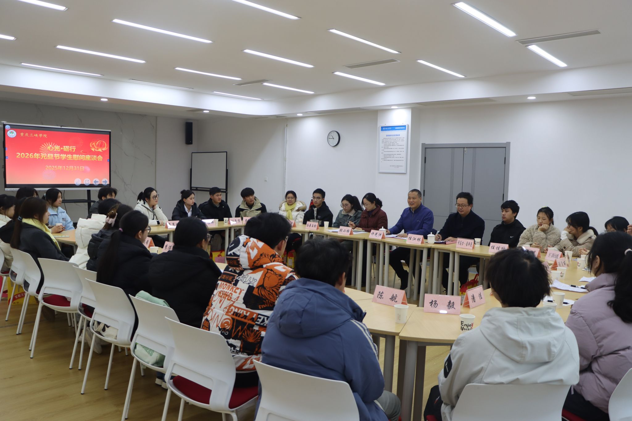 12月31日下午,學校在眾創(chuàng)空間113舉行“心光·礪行”2026年元旦節(jié)學生慰問座談會。學校黨委書記許光洪出席活動并講話。